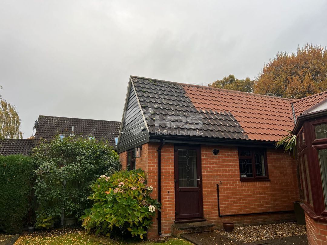 - Application of a Roof Biocide: Also known as a Soft wash. This is a fungicidal wash that’ll help to kill off any remaining moss spores not visible to the naked eye and will help keep the roof looking cleaner for longer post-clean.